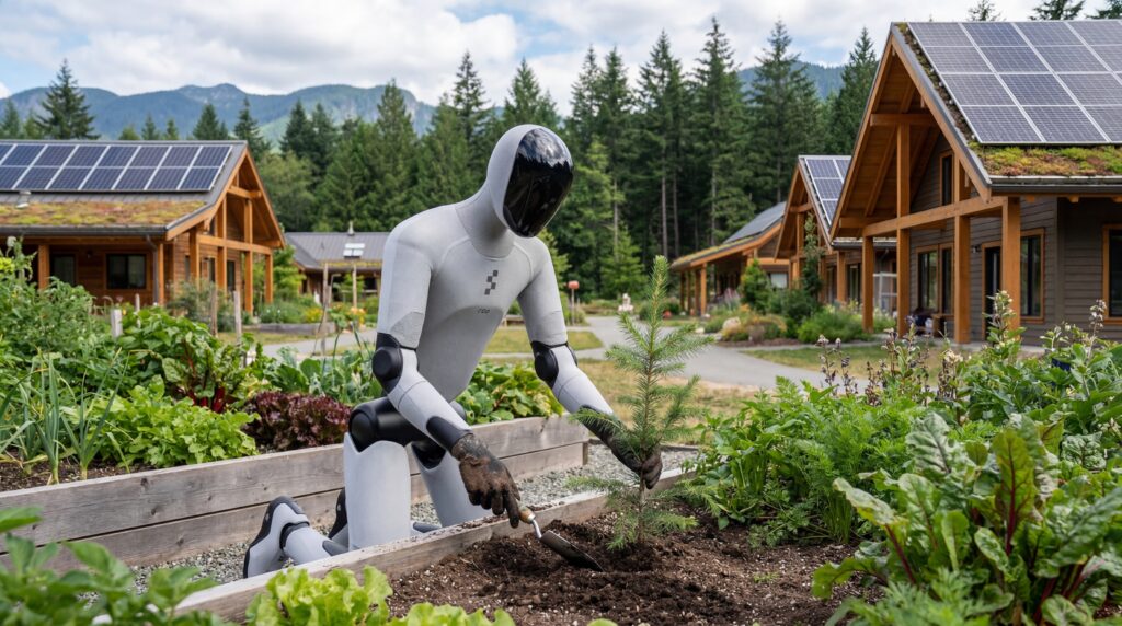 Invest in a small fleet of emerging robots and automated systems to experiment with real-world operations across the property as capabilities and price points mature. This allows the village to pilot practical uses—maintenance, landscaping, logistics, cleaning, monitoring, and fabrication support—while positioning the campus as a living testbed for applied robotics in a human-scale environment, improving efficiency over time and informing future village deployments.